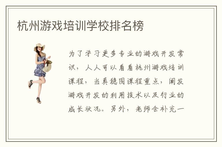 杭州游戲培訓(xùn)學(xué)校排名榜
