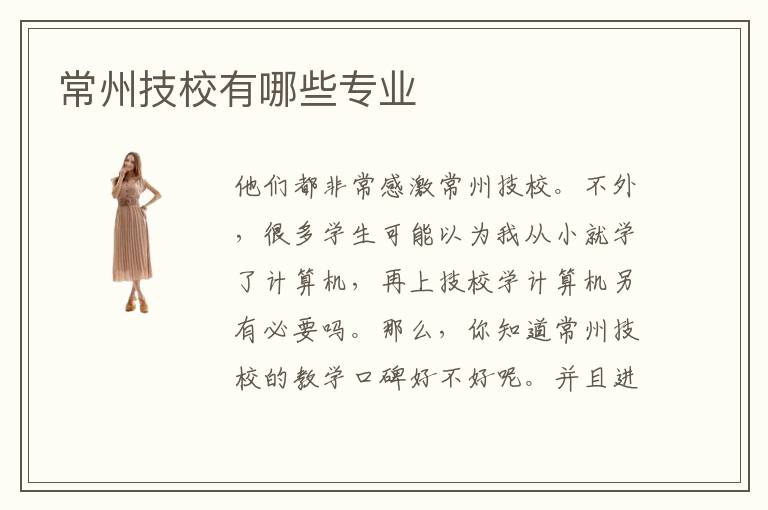 他們都非常感激常州技校。不外,很多學(xué)生可能以為我從小就學(xué)了計算機(jī),再上技校學(xué)計算機(jī)另有必要嗎。那么,你知道常州技校的教學(xué)口碑好不好呢。并且進(jìn)入到社會之后更多看的是我們的妙技,其實(shí)不是響應(yīng)的一些分?jǐn)?shù)。什么技校有前景呢。可以預(yù)感的,跟著網(wǎng)絡(luò)與古板財產(chǎn)慎密連系,將來的疾速增添是必定的,并且企業(yè)信息化與電子政務(wù)曾經(jīng)成為中國信息化范疇比較受閉注的成長重點(diǎn),并被明白列為我國信息化動員產(chǎn)業(yè)化計謀國策的實(shí)行重點(diǎn)。其實(shí)大可不必這么想,常州技校并不是什么差等學(xué)校,只是他們更多的在于對職業(yè)技術(shù)技能的培訓(xùn),而非文化教育,所以那里的學(xué)生普遍文化考試分?jǐn)?shù)都不高。常州技術(shù)培訓(xùn)學(xué)校發(fā)展情況良好。其實(shí),因?yàn)槌V菔歉=ㄊ?,所以在技術(shù)的發(fā)展方面還是比較不錯的。