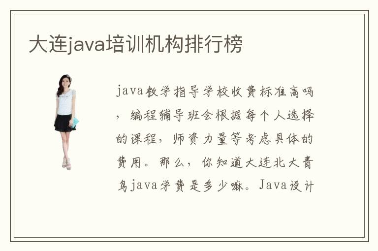 java教學(xué)指導(dǎo)學(xué)校收費(fèi)標(biāo)準(zhǔn)高嗎,編程輔導(dǎo)班會根據(jù)每個人選擇的課程,師資力量等考慮具體的費(fèi)用。那么,你知道大連北大青鳥java學(xué)費(fèi)是多少嘛。Java設(shè)計(jì)的學(xué)習(xí)本就并不是是一件輕易的事變,更不是能夠一揮而就的,以是大連Java培訓(xùn)班的展開是極為有必要的,其實(shí)不是說在大連Java培訓(xùn)機(jī)構(gòu)學(xué)習(xí)就能在短時間內(nèi)完整學(xué)好精曉Java設(shè)計(jì),而是說,在大連Java培訓(xùn)學(xué)校的幫助下,我們能夠挑高本來的學(xué)校效力。不過大家也不要太過于失望,因?yàn)楝F(xiàn)在有很多機(jī)構(gòu)都是可以提高Java專業(yè)應(yīng)用能力的。關(guān)于一些剛?cè)腴T的新手學(xué)生,學(xué)java要準(zhǔn)備什么呢。薪資吸收力度大嗎。找到大連Java培訓(xùn)班黑馬顯得尤為重要了,這需要大家對大連Java培訓(xùn)學(xué)校有一定的預(yù)測能力。
