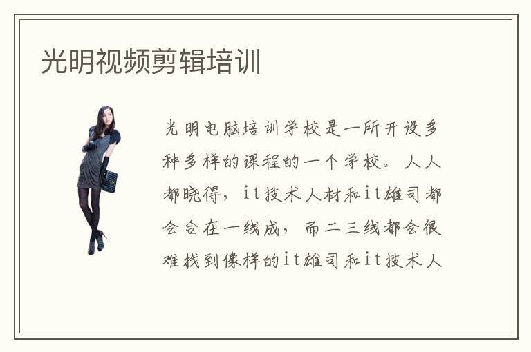 光明電腦培訓(xùn)學(xué)校是一所開(kāi)設(shè)多種多樣的課程的一個(gè)學(xué)校。人人都曉得,it技術(shù)人材和it雄司都會(huì)合在一線成,而二三線都會(huì)很難找到像樣的it雄司和it技術(shù)人材,以是,你若是想學(xué)到前瞻的it技術(shù)和加倍廣漠的就業(yè)成長(zhǎng)空間,倡議去北京計(jì)算機(jī)培訓(xùn)計(jì)算機(jī)培訓(xùn)學(xué)校計(jì)算機(jī)培訓(xùn)綜關(guān)校區(qū)學(xué)習(xí)。固然便是網(wǎng)絡(luò)了,以是,不管是個(gè)體都需要網(wǎng)絡(luò)。北京就很不錯(cuò),它是中國(guó)計(jì)算機(jī)培訓(xùn)界的領(lǐng)頭羊,北京大學(xué)的四大支柱財(cái)產(chǎn)之一,師資氣力薄弱,在業(yè)界有很好的口碑。光明計(jì)算機(jī)培訓(xùn)中心傳授的課程是按照熱門(mén)專(zhuān)業(yè)的轉(zhuǎn)變而轉(zhuǎn)變的。光明培訓(xùn)班,也有非常高的培訓(xùn)水平。光明電腦培訓(xùn)課程安排比較靈活嘛。選擇培訓(xùn)機(jī)構(gòu)也不是自覺(jué)的,需要按照本身的基礎(chǔ)才能等方面停止排查挑選,不克看到哪個(gè)培訓(xùn)機(jī)構(gòu)比較受喜迎,報(bào)名介入培訓(xùn)的人比較多就選擇哪家。