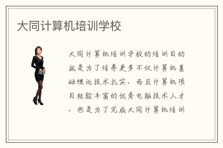 大同計算機培訓學校的培訓目的就是為了培養(yǎng)更多不僅計算機基礎理論技術扎實、而且計算機項目經驗豐富的優(yōu)秀電腦技術人才,也是為了完成大同計算機培訓學校在校學員想要成為優(yōu)秀計算機精英的夢想。大同計算機培訓學校也在為了這個目標進行努力,不斷根據國內互聯(lián)網、計算機市場的需求特征進行課程的更新改善,也成功為國內的各大互聯(lián)網公司送去大批優(yōu)秀計算機技術型優(yōu)秀人才。