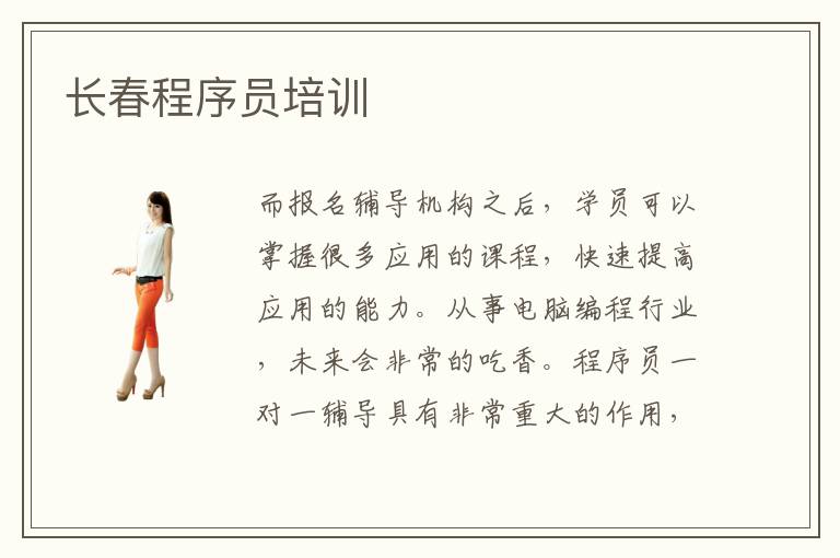 而報(bào)名輔導(dǎo)機(jī)構(gòu)之后,學(xué)員可以掌握很多應(yīng)用的課程,快速提高應(yīng)用的能力。從事電腦編程行業(yè),未來會非常的吃香。程序員一對一輔導(dǎo)具有非常重大的作用,首先在1對1主導(dǎo)的情況下,同學(xué)有問題可以馬上提出,然后老師可以及時(shí)回答,解決問題的效率更高,而且相互之間交流也非常方便。長春程序員培訓(xùn),教師團(tuán)隊(duì)也都是專業(yè)的。許多同學(xué)對編程語言都有相當(dāng)濃厚的興趣,但自己在專業(yè)領(lǐng)域上面沒有認(rèn)真的學(xué)習(xí)態(tài)度,或者學(xué)習(xí)時(shí)間不夠用,而且方向模糊,導(dǎo)致效率很低。程序員培訓(xùn)有沒有用,程序員培訓(xùn)班當(dāng)然有很明顯的作用,首先老師可以針對同學(xué)的應(yīng)用方向進(jìn)行個(gè)性化的課程設(shè)置,有些同學(xué)的工作能力不強(qiáng),而且在學(xué)習(xí)過程中很被動(dòng),老師就會分析其中的原因,然后結(jié)合工作要求,進(jìn)行嚴(yán)格訓(xùn)練。