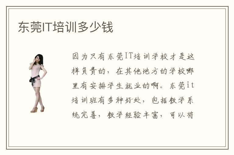 因?yàn)橹挥?a href="/it/detail665.html">東莞IT培訓(xùn)學(xué)校才是這樣負(fù)責(zé)的,在其他地方的學(xué)校哪里有安排學(xué)生就業(yè)的啊。東莞it培訓(xùn)班有多種好處,包括教學(xué)系統(tǒng)完善,教學(xué)經(jīng)驗(yàn)豐富,可以將主干課程和選修課程劃分出來(lái),而且也會(huì)利用大量的實(shí)踐環(huán)節(jié),協(xié)助大家掌握工作方面的要求。東莞IT培訓(xùn)學(xué)校教育質(zhì)量大多數(shù)都是比較遙遠(yuǎn)的,很多老師都可以為學(xué)生制定專業(yè)的學(xué)習(xí)計(jì)劃,也可以幫助學(xué)生發(fā)揮更強(qiáng)的優(yōu)勢(shì),找到自己的潛力和優(yōu)點(diǎn),針對(duì)性進(jìn)行培養(yǎng)。對(duì)于很多學(xué)生而言,沒(méi)有合適的學(xué)習(xí)方法,找不到學(xué)習(xí)目標(biāo),很容易影響進(jìn)度,但有了機(jī)構(gòu)的幫助,問(wèn)題便可迎刃而解。東莞it培訓(xùn)學(xué)校還會(huì)展示大量的教學(xué)模式,包括it遠(yuǎn)程教育、一對(duì)一輔導(dǎo)、it入門輔導(dǎo)等等,讓大家深入理解計(jì)算機(jī)領(lǐng)域的內(nèi)容,然后發(fā)揮出良好的技術(shù)優(yōu)勢(shì)。