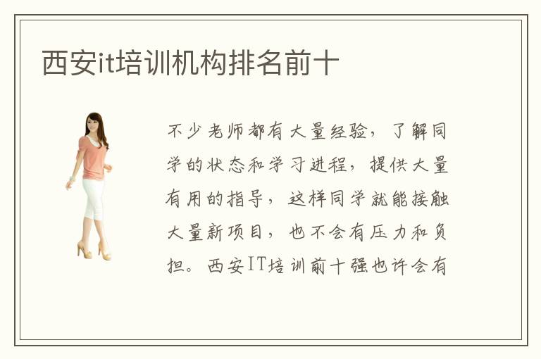 不少老師都有大量經(jīng)驗(yàn),了解同學(xué)的狀態(tài)和學(xué)習(xí)進(jìn)程,提供大量有用的指導(dǎo),這樣同學(xué)就能接觸大量新項(xiàng)目,也不會有壓力和負(fù)擔(dān)。西安IT培訓(xùn)前十強(qiáng)也許會有不錯的應(yīng)用優(yōu)勢和教學(xué)優(yōu)勢,也可以使課堂變得更加靈活,調(diào)動學(xué)生的學(xué)習(xí)動力和積極性。怎么學(xué)習(xí)it課程,首先要找到自身的不足之處,然后制定清晰的規(guī)劃,因?yàn)槊總€學(xué)生的學(xué)習(xí)進(jìn)度和學(xué)習(xí)優(yōu)勢都不太一樣,所以具體的弱項(xiàng)也有差異。it如何自學(xué),要想自學(xué),可以找到一些重要的書本,理解指定教材的內(nèi)容,然后嘗試動手實(shí)踐。同學(xué)在自學(xué)的情況下,往往很難理解這些內(nèi)容,難以整理知識框架,所以要調(diào)整學(xué)習(xí)思路,找到更實(shí)用的學(xué)習(xí)途徑,包括報名輔導(dǎo)班。西安it培訓(xùn)班哪家好要看教學(xué)的效果,培訓(xùn)優(yōu)勢,教學(xué)口碑。