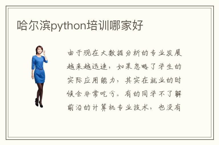 由于現(xiàn)在大數(shù)據(jù)分析的專業(yè)發(fā)展越來越迅速,如果忽略了學(xué)生的實際應(yīng)用能力,其實在就業(yè)的時候會非常吃虧。有的同學(xué)不了解前沿的計算機(jī)專業(yè)技術(shù),也沒有開闊的學(xué)習(xí)思維,總是局限在很簡單的知識層面,因此學(xué)習(xí)質(zhì)量問題,成績非常不好。Python專業(yè)培訓(xùn)機(jī)構(gòu)的課程內(nèi)容是比較多的,而且也需要全面的了解,才能夠掌握正確的應(yīng)用。好在大家可以挑選一些專業(yè)實力較強(qiáng)的輔導(dǎo)機(jī)構(gòu),老師的課程很嚴(yán)謹(jǐn),教學(xué)內(nèi)容很豐富,同學(xué)進(jìn)步會很快。哈爾濱python培訓(xùn)大概多少錢,可能需要1萬左右,當(dāng)然不是所有專業(yè)都這么貴,有些人學(xué)習(xí)基礎(chǔ)的課程,可能兩三千塊就可以搞定。部分學(xué)生就是經(jīng)驗有限,學(xué)習(xí)水平不強(qiáng),資源積累不多,工作水平很糟糕,也容易被時代淘汰。