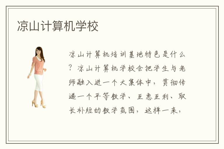 涼山計算機培訓基地特色是什么?涼山計算機學校會把學生與老師融入進一個大集體中,貫徹傳遞一個平等教學、互惠互利、取長補短的教學氛圍,這樣一來,激發(fā)好學生學習計算機的濃烈興趣,也讓涼山計算機培訓學校的培訓老師也積極地開展教學起來。涼山計算機學校線上教學也是其特色之一,線上教學滿足了學生隨時學習的需求,幫助更好地鞏固、復習。