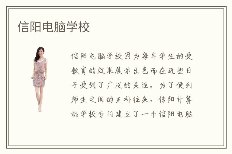 信陽電腦學(xué)校因?yàn)槊磕陮W(xué)生的受教育的效果展示出色而在近些日子受到了廣泛的關(guān)注。為了便利師生之間的互補(bǔ)往來,信陽計算機(jī)學(xué)校專門建立了一個信陽電腦培訓(xùn)專業(yè)訓(xùn)練平臺,在這樣一個平臺里接受教育,學(xué)生們可以把自己遇到的難題、疑惑都提出了,自然會有老師來解答。信陽計算機(jī)學(xué)校官方介紹很詳細(xì),信陽計算機(jī)培訓(xùn)機(jī)構(gòu)的官方網(wǎng)站上都描述記載得很清楚。