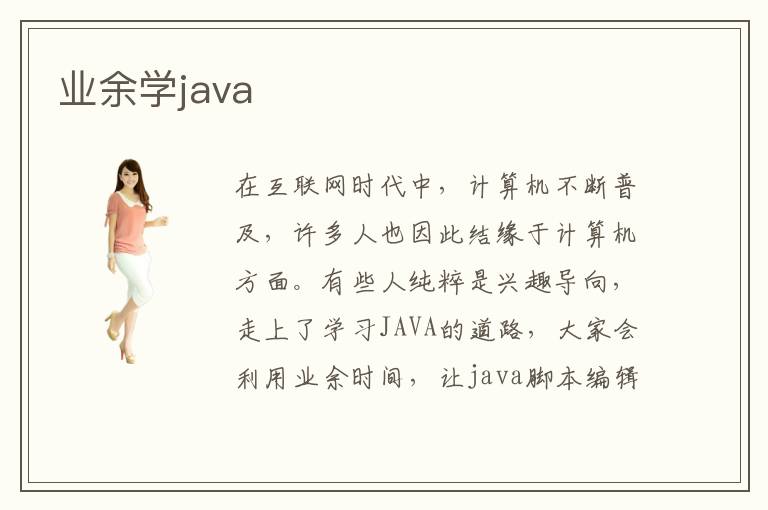 在互聯(lián)網(wǎng)時代中,計算機不斷普及,許多人也因此結(jié)緣于計算機方面。有些人純粹是興趣導向,走上了學習JAVA的道路,大家會利用業(yè)余時間,讓java腳本編輯成為一種業(yè)余愛好,java培訓機構(gòu)不僅提供專業(yè)的java培訓,而且還提供了針對有業(yè)余愛好的java學習者的相關(guān)訓練。業(yè)余java怎么學?業(yè)余怎么學習JAVA呢?怎樣利用業(yè)余時間學習java?業(yè)余學JAVA有效果嗎?