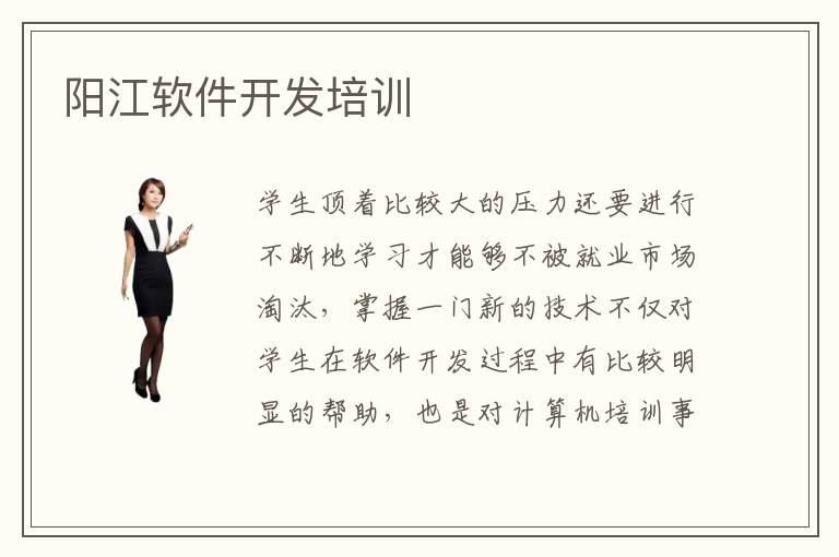 學(xué)生頂著比較大的壓力還要進(jìn)行不斷地學(xué)習(xí)才能夠不被就業(yè)市場(chǎng)淘汰,掌握一門新的技術(shù)不僅對(duì)學(xué)生在軟件開發(fā)過(guò)程中有比較明顯的幫助,也是對(duì)計(jì)算機(jī)培訓(xùn)事業(yè)有更深的推動(dòng)。陽(yáng)江軟件開發(fā)培訓(xùn)是比較專業(yè)的培訓(xùn),雖然培訓(xùn)過(guò)程也是很有限的,但是學(xué)生在陽(yáng)江軟件開發(fā)培訓(xùn)機(jī)構(gòu)中學(xué)習(xí)到的知識(shí)卻是溫故而知新的。陽(yáng)江軟件設(shè)計(jì)與開發(fā)專業(yè)好就業(yè)嗎?陽(yáng)江軟件開發(fā)專業(yè)發(fā)展前景怎么樣?