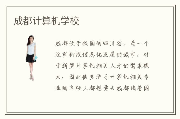 成都位于我國(guó)的四川省,是一個(gè)注重科技信息化發(fā)展的城市,對(duì)于新型計(jì)算機(jī)相關(guān)人才的需求很大,因此很多學(xué)習(xí)計(jì)算機(jī)相關(guān)專(zhuān)業(yè)的年輕人都想要去成都試著闖一翻。學(xué)好了計(jì)算機(jī)相關(guān)專(zhuān)業(yè)在成都是很有發(fā)展前景的,薪資待遇等各方面都是比較優(yōu)厚的。這個(gè)地方本身也開(kāi)設(shè)了很多所專(zhuān)業(yè)成都計(jì)算機(jī)學(xué)校,那么到底哪所成都計(jì)算機(jī)學(xué)校比較靠譜呢?這所成都計(jì)算機(jī)學(xué)校的教學(xué)理念又是什么呢?