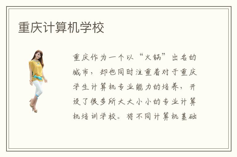 重慶作為一個以“火鍋”出名的城市,卻也同時注重著對于重慶學(xué)生計算機專業(yè)能力的培養(yǎng),開設(shè)了很多所大大小小的專業(yè)計算機培訓(xùn)學(xué)校。將不同計算機基礎(chǔ)以及專業(yè)學(xué)習(xí)的同學(xué)進(jìn)行分班教學(xué)是重慶計算機學(xué)校的教學(xué)特色,這樣的教學(xué)模式也使得重慶計算機學(xué)校的教學(xué)質(zhì)量有了很大的提高。面對這種具有針對性的教學(xué),學(xué)員們的專業(yè)學(xué)習(xí)效果也會事半功倍,感興趣的同學(xué)可以來重慶計算機學(xué)??纯?。
