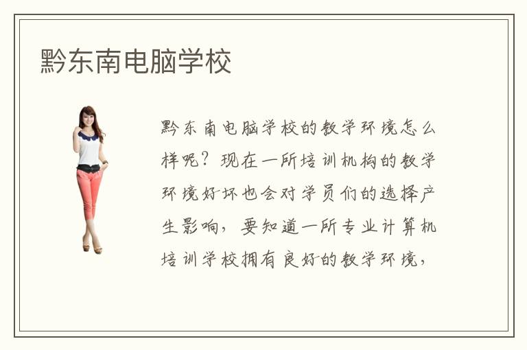 黔東南電腦學(xué)校的教學(xué)環(huán)境怎么樣呢?現(xiàn)在一所培訓(xùn)機(jī)構(gòu)的教學(xué)環(huán)境好壞也會(huì)對(duì)學(xué)員們的選擇產(chǎn)生影響,要知道一所專(zhuān)業(yè)計(jì)算機(jī)培訓(xùn)學(xué)校擁有良好的教學(xué)環(huán)境,也有助于學(xué)員們培養(yǎng)對(duì)于計(jì)算機(jī)相關(guān)專(zhuān)業(yè)技術(shù)的學(xué)習(xí)興趣,也有助于學(xué)員們?cè)?a href="/it/detail10301.html">計(jì)算機(jī)學(xué)習(xí)的枯燥之余有了休閑娛樂(lè)的場(chǎng)所,放松自己的同時(shí)也提高了學(xué)習(xí)效率。那么,黔東南電腦學(xué)校的周邊環(huán)境好不好呢?符不符合學(xué)員們對(duì)于優(yōu)秀電腦學(xué)校的選擇標(biāo)準(zhǔn)呢?