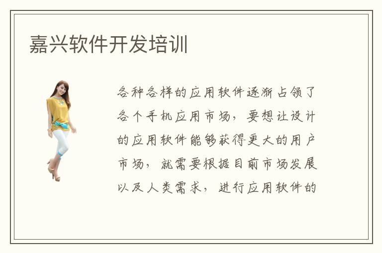各種各樣的應(yīng)用軟件逐漸占領(lǐng)了各個手機應(yīng)用市場,要想讓設(shè)計的應(yīng)用軟件能夠獲得更大的用戶市場,就需要根據(jù)目前市場發(fā)展以及人類需求,進行應(yīng)用軟件的不斷開發(fā)設(shè)計。嘉興是我國浙江省一個市區(qū),浙江省是國內(nèi)有名的經(jīng)濟開發(fā)建設(shè)城市,對于應(yīng)用軟件市場的占領(lǐng)也是很有信心的,嘉興軟件開發(fā)培訓(xùn)機構(gòu)課程開設(shè)的主要目的就是為了培養(yǎng)更多為浙江軟件市場所用的優(yōu)秀技術(shù)人才。
