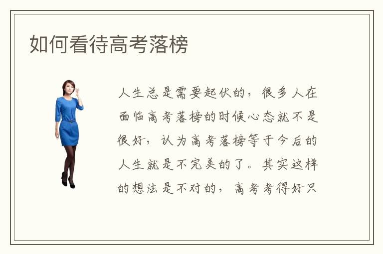 人生總是需要起伏的,很多人在面臨高考落榜的時候心態(tài)就不是很好,認為高考落榜等于今后的人生就是不完美的了。其實這樣的想法是不對的,高考考得好只能決定你去上一所好的大學(xué),而專業(yè)課程的選擇才是決定你未來就業(yè)方向的主要,因此不論高考考的好還是不好,都要謹慎選擇所學(xué)的專業(yè)課程,這將會對未來的就業(yè)產(chǎn)生影響。如何看待高考落榜還是需要大家保持一顆平常的心。