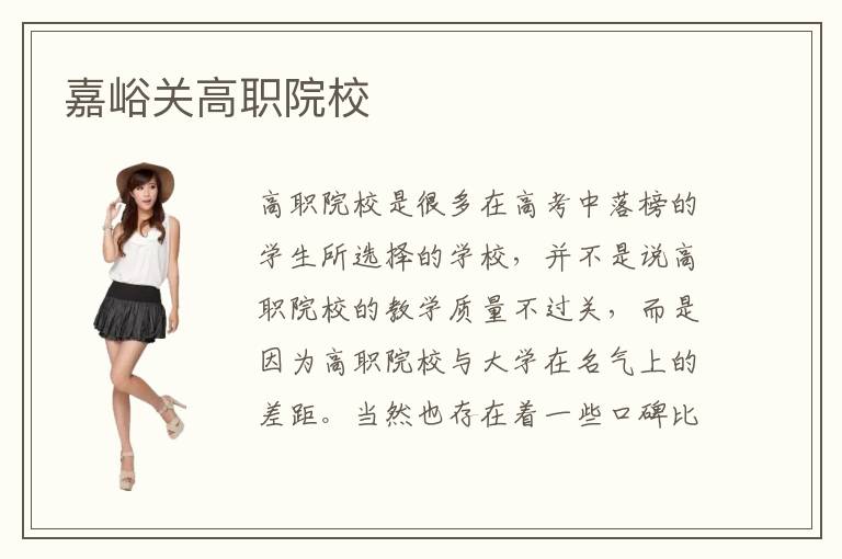 高職院校是很多在高考中落榜的學(xué)生所選擇的學(xué)校,并不是說(shuō)高職院校的教學(xué)質(zhì)量不過(guò)關(guān),而是因?yàn)楦呗氃盒Ec大學(xué)在名氣上的差距。當(dāng)然也存在著一些口碑比較好的高職院校,例如嘉峪關(guān)高職院校就是這樣一所靠譜的技術(shù)培訓(xùn)學(xué)校。嘉峪關(guān)高職院校開(kāi)設(shè)了豐富的專(zhuān)業(yè)課程,專(zhuān)業(yè)的不同所需要學(xué)習(xí)的課程也就不同了,嘉峪關(guān)高職院校貼心的為每位學(xué)員都安排了合理的課程教學(xué),使得嘉峪關(guān)高職院校在校學(xué)員的學(xué)習(xí)效果都不錯(cuò)。