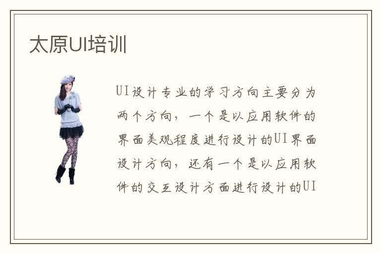 UI設(shè)計專業(yè)的學(xué)習(xí)方向主要分為兩個方向,一個是以應(yīng)用軟件的界面美觀程度進行設(shè)計的UI界面設(shè)計方向,還有一個是以應(yīng)用軟件的交互設(shè)計方面進行設(shè)計的UI界面設(shè)計方向,這兩種學(xué)習(xí)方向是需要進行不同專業(yè)訓(xùn)練的。太原UI培訓(xùn)機構(gòu)為這兩種不同學(xué)習(xí)方向的同學(xué)開設(shè)了不同的培訓(xùn)班,分為了太原UI界面設(shè)計培訓(xùn)班和太原UI交互設(shè)計培訓(xùn)班,太原UI培訓(xùn)是大家學(xué)習(xí)UI設(shè)計專業(yè)技術(shù)比較有效的平臺之一。