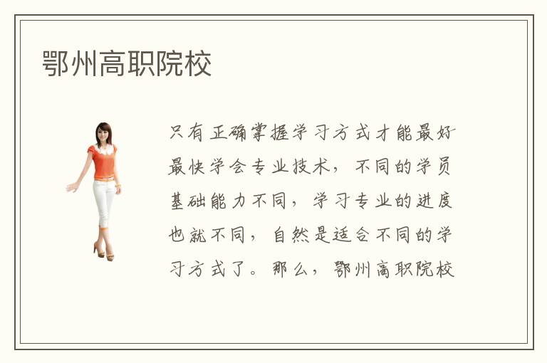 只有正確掌握學習方式才能最好最快學會專業(yè)技術,不同的學員基礎能力不同,學習專業(yè)的進度也就不同,自然是適合不同的學習方式了。那么,鄂州高職院校的培訓方式是什么呢?鄂州高職院校會根據學員們基礎能力的不同進行基礎培訓班和提升培訓班不同的課程安排,這樣有目的性的進行專業(yè)課程教學自然會大大提高學員們的學習效率,鄂州高職院校在校學員的學習效果當然也是很好的。