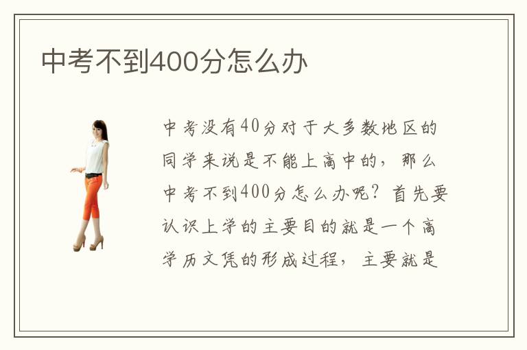 中考沒有40分對于大多數(shù)地區(qū)的同學來說是不能上高中的,那么中考不到400分怎么辦呢?首先要認識上學的主要目的就是一個高學歷文憑的形成過程,主要就是為了今后的就業(yè)工作做準備,其實想要找到一份滿意的工作最重要的還是要看你的專業(yè)實力,沒有高技術水平即時你的學歷再好企業(yè)也是不會錄用你的。現(xiàn)在有很多專門為這些考不上高中的同學設立的中專技術培訓學校,中考不到400分的同學可以考慮一下。