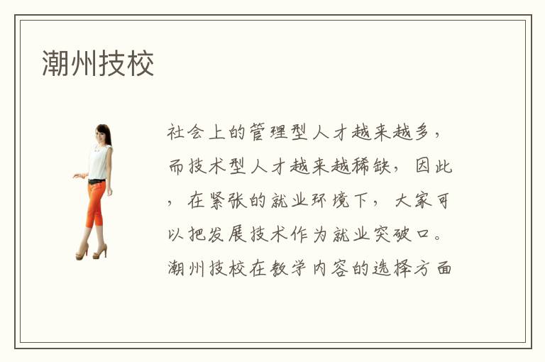 社會(huì)上的管理型人才越來(lái)越多,而技術(shù)型人才越來(lái)越稀缺,因此,在緊張的就業(yè)環(huán)境下,大家可以把發(fā)展技術(shù)作為就業(yè)突破口。潮州技校在教學(xué)內(nèi)容的選擇方面是比較全面而專業(yè)的。潮州職業(yè)學(xué)校是人才培養(yǎng)實(shí)現(xiàn)的一個(gè)重要意義所在。潮州地區(qū)職業(yè)技術(shù)型人才培養(yǎng)發(fā)展如何?在潮州職業(yè)技術(shù)培訓(xùn)機(jī)構(gòu)里學(xué)生可以盡可能結(jié)合自己的興趣選擇合適的專業(yè)。