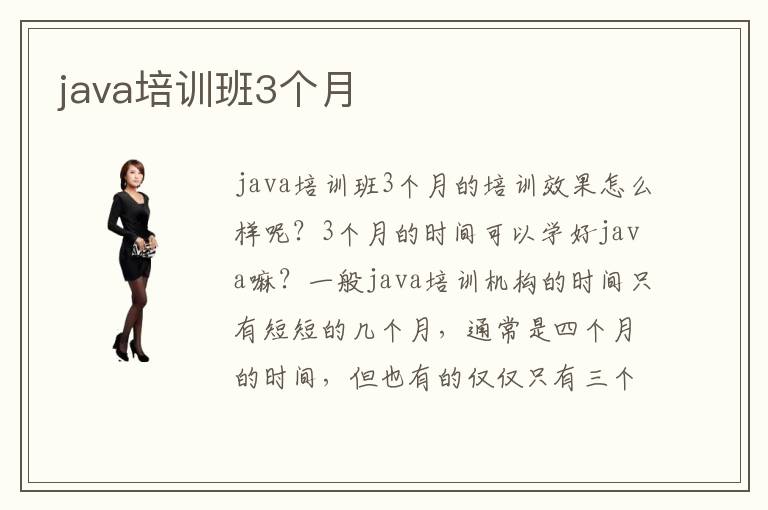 java培訓班3個月的培訓效果怎么樣呢?3個月的時間可以學好java嘛?一般java培訓機構的時間只有短短的幾個月,通常是四個月的時間,但也有的僅僅只有三個月,這不禁讓很多人產生了疑惑,這么短的時間,足夠我們學會java,學好java嗎?這些擔心并不是沒有道理的,眾所周知,java是一門枯燥難學的計算機專業(yè)課程,而java培訓班則僅用幾個月時間完成教學,但教學質量卻比學校好得多。