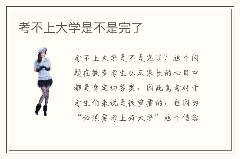 考不上大學(xué)是不是完了?這個(gè)問(wèn)題在很多考生以及家長(zhǎng)的心目中都是肯定的答案,因此高考對(duì)于考生們來(lái)說(shuō)是很重要的,也因?yàn)?ldquo;必須要考上好大學(xué)”這個(gè)信念而給考生們?cè)斐闪撕艽蟮膲毫?,由此是很有可能?huì)導(dǎo)致高考失利的。其實(shí)考不上大學(xué)也是給自己一個(gè)努力學(xué)習(xí)技能專業(yè)的動(dòng)力,也是給自己一個(gè)學(xué)習(xí)專業(yè)的機(jī)會(huì),考不上大學(xué)的同學(xué)可以考慮一下專業(yè)的技術(shù)培訓(xùn)機(jī)構(gòu)。