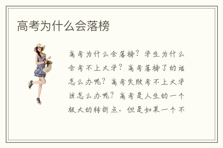 高考為什么會落榜?學生為什么會考不上大學?高考落榜了的話怎么辦呢?高考失敗考不上大學該怎么辦呢?高考是人生的一個極大的轉折點,但是如果一個不小心就會造成高考的失誤可能最壞的結果就是考不上大學了,這種情況一旦發(fā)生的話,大家就不要過于沮喪不要太對生活喪失信心,要好好思考自己的學習旅程,了解自己真正的學習動向和興趣。