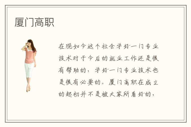 在現(xiàn)如今這個(gè)社會(huì)學(xué)好一門專業(yè)技術(shù)對(duì)于今后的就業(yè)工作還是很有幫助的,學(xué)好一門專業(yè)技術(shù)也是很有必要的。廈門高職在成立的起初并不是被大家所看好的,很多廈門市民認(rèn)為廈門高職的專業(yè)性不夠,面對(duì)專業(yè)技術(shù)人才的培訓(xùn)一定會(huì)束手無策,然而廈門高職擁有國內(nèi)各個(gè)行業(yè)比較資深的技術(shù)人員作為師資團(tuán)隊(duì),在專業(yè)性這方面還是很權(quán)威的,總的來說廈門高職是具有很好發(fā)展前景的。
