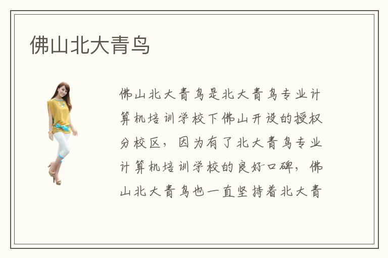 佛山北大青鳥是北大青鳥專業(yè)計算機(jī)培訓(xùn)學(xué)校下佛山開設(shè)的授權(quán)分校區(qū),因?yàn)橛辛?a href="/it/detail10604.html">北大青鳥專業(yè)計算機(jī)培訓(xùn)學(xué)校的良好口碑,佛山北大青鳥也一直堅持著北大青鳥“用良心做好教育”的口碑進(jìn)行課程培訓(xùn),毋庸置疑的佛山北大青鳥成為了佛山市民心目中排名第一的專業(yè)計算機(jī)培訓(xùn)學(xué)校。佛山北大青鳥的名氣并不靠努力宣傳得來的,相反它更多的是進(jìn)行專業(yè)課程的調(diào)整更新,良好口碑完全是通過教學(xué)實(shí)力得來的。