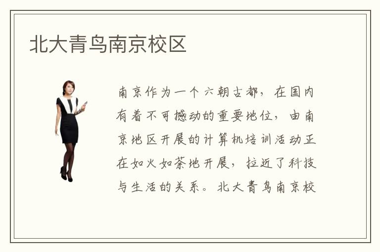 南京作為一個六朝古都,在國內(nèi)有著不可撼動的重要地位,由南京地區(qū)開展的計算機(jī)培訓(xùn)活動正在如火如荼地開展,拉近了科技與生活的關(guān)系。北大青鳥南京校區(qū)成立之初是為了能夠保證學(xué)生們未來的良好工作環(huán)境需求。南京北大青鳥北大青鳥學(xué)校貫徹落實(shí)以人為本的教育方針,積極主動地配合國家的號召。南京北大青鳥學(xué)校一共有幾家?南京北大青鳥培訓(xùn)機(jī)構(gòu)培訓(xùn)成果展示。