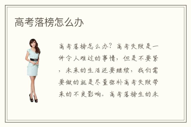 高考落榜怎么辦?高考失敗是一件令人難過的事情,但是不要緊,未來的生活還要繼續(xù),我們需要做的就是盡量彌補(bǔ)高考失敗帶來的不良影響。高考落榜生的未來規(guī)劃要做好并且要做得比較全面、比較詳細(xì),因為這關(guān)系到學(xué)生們未來的學(xué)習(xí)計劃。高考失敗可以去學(xué)習(xí)技術(shù)嗎?高考失敗其實還是有很多出路的,其中最有效的還是去掌握一門真正有效的技術(shù),當(dāng)然具體還是要結(jié)合實際。