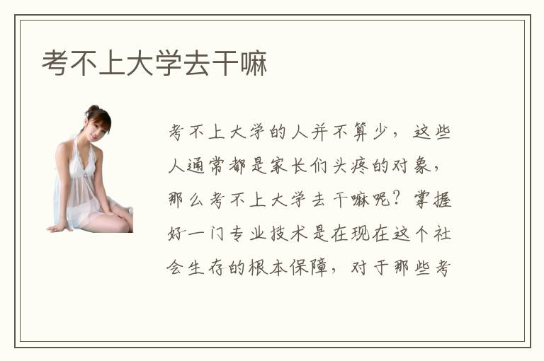 考不上大學的人并不算少,這些人通常都是家長們頭疼的對象,那么考不上大學去干嘛呢?掌握好一門專業(yè)技術是在現在這個社會生存的根本保障,對于那些考不上大學的人來說也是一樣的,學好一門專業(yè)技術是很有必要的。考不上大學首要任務就是了解社會發(fā)展的前景趨勢,選擇一門適合自己學習并且就業(yè)前景廣闊的專業(yè)進行學習,因此考不上大學的同學可以考慮去上一些專業(yè)技術培訓學校。