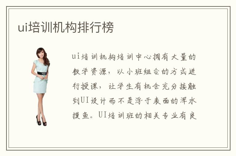 ui培訓(xùn)機(jī)構(gòu)培訓(xùn)中心擁有大量的教學(xué)資源,以小班組合的方式進(jìn)行授課,讓學(xué)生有機(jī)會充分接觸到UI設(shè)計(jì)而不是浮于表面的渾水摸魚。UI培訓(xùn)班的相關(guān)專業(yè)有良好的市場就業(yè)情況,受到不少學(xué)生的追捧。當(dāng)然,在進(jìn)行UI培訓(xùn)班選擇的時(shí)候,很多人也會感到困惑。UI培訓(xùn)班排行榜,UI培訓(xùn)機(jī)構(gòu)排行榜,UI培訓(xùn)機(jī)構(gòu)排行榜可信度高嗎?UI培訓(xùn)班各家口碑情況怎么樣?