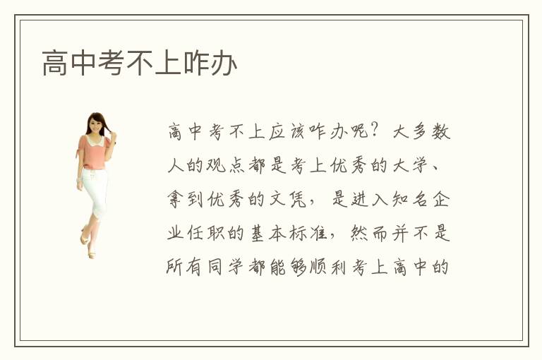 高中考不上應該咋辦呢?大多數(shù)人的觀點都是考上優(yōu)秀的大學、拿到優(yōu)秀的文憑,是進入知名企業(yè)任職的基本標準,然而并不是所有同學都能夠順利考上高中的,考不上高中會讓很多同學的大學希望破滅。當然也不是所有企業(yè)都是以文憑為基準的,現(xiàn)在更多企業(yè)更看中的是求職者的專業(yè)技術水平。因此掌握一門高超的專業(yè)技術才是考不上高中的同學,要想擁有美好的未來該做的事情。