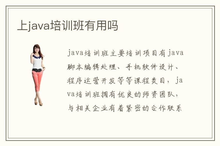java培訓(xùn)班主要培訓(xùn)項目有java腳本編輯處理、手機軟件設(shè)計、程序運營開發(fā)等等課程類目,java培訓(xùn)班擁有優(yōu)良的師資團隊,與相關(guān)企業(yè)有著緊密的合作聯(lián)系。java培訓(xùn)班培訓(xùn)項目有哪些?JAVA培訓(xùn)中心機構(gòu)有什么特色的項目培訓(xùn)?java培訓(xùn)班為程序開發(fā)、腳本編輯等問題提供了交流接觸的平臺,JAVA培訓(xùn)班有沒有實質(zhì)性用處?java培訓(xùn)中心培訓(xùn)效果如何?