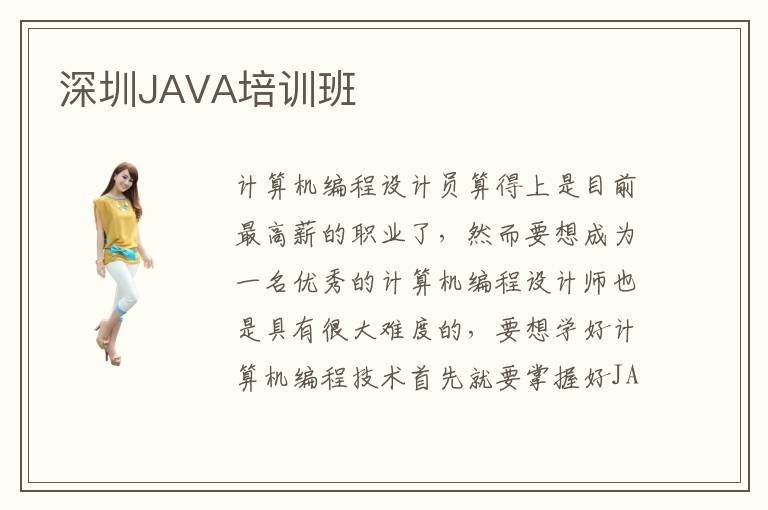 計算機(jī)編程設(shè)計員算得上是目前最高薪的職業(yè)了,然而要想成為一名優(yōu)秀的計算機(jī)編程設(shè)計師也是具有很大難度的,要想學(xué)好計算機(jī)編程技術(shù)首先就要掌握好JAVA語言編程設(shè)計技術(shù),總的來說JAVA語言的就業(yè)前景還是很廣闊的。那么怎樣才能又快又好的學(xué)會JAVA語言編程設(shè)計呢?深圳JAVA培訓(xùn)班是大家學(xué)習(xí)JAVA的靠譜平臺,想要成為計算機(jī)編程設(shè)計師的同學(xué)可以考慮一下深圳JAVA培訓(xùn)班。