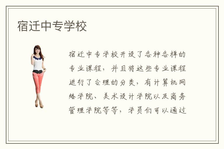 宿遷中專學校開設了各種各樣的專業(yè)課程,并且將這些專業(yè)課程進行了合理的分類,有計算機網(wǎng)絡學院、美術(shù)設計學院以及商務管理學院等等,學員們可以通過大致想要的學習方向根據(jù)學院的分類快速找到想要學習的專業(yè)課程。宿遷中專學校通過自己專業(yè)化的教學培訓,順利為宿遷市的各行各業(yè)培養(yǎng)了很多優(yōu)秀的技術(shù)人才,豐富的教學經(jīng)驗使得宿遷中專學校在校學員的學習效果很顯著。
