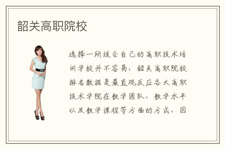 選擇一所適合自己的高職技術(shù)培訓(xùn)學(xué)校并不容易,韶關(guān)高職院校排名數(shù)據(jù)是最直觀反應(yīng)各大高職技術(shù)學(xué)院在教學(xué)團(tuán)隊(duì)、教學(xué)水平以及教學(xué)課程等方面的方式,因此在進(jìn)行高職技術(shù)培訓(xùn)學(xué)校的選擇的時(shí)候可以參考一下韶關(guān)高職院校排名數(shù)據(jù),當(dāng)然進(jìn)行高職技術(shù)培訓(xùn)學(xué)校選擇的時(shí)候,根據(jù)自己的專(zhuān)業(yè)基礎(chǔ)情況以及自己的學(xué)習(xí)能力而定。那么,你知道韶關(guān)高職院校排名前列的有哪些呢?