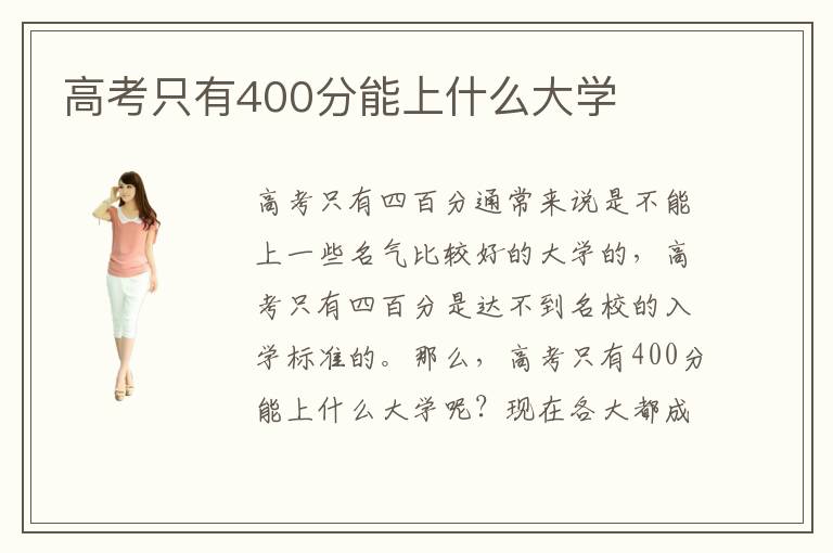 高考只有四百分通常來說是不能上一些名氣比較好的大學的,高考只有四百分是達不到名校的入學標準的。那么,高考只有400分能上什么大學呢?現(xiàn)在各大都成立了很多大專技術(shù)培訓學校,是特地為這些考不上大學的挑選準備的一個以專業(yè)技術(shù)培訓為重點的平臺,在各種大專技術(shù)學院中同學們可以根據(jù)自己的實際情況以及未來就業(yè)形勢進行專業(yè)技術(shù)學習的參考。