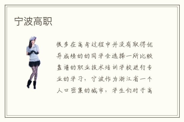 很多在高考過(guò)程中并沒(méi)有取得優(yōu)異成績(jī)的的同學(xué)會(huì)選擇一所比較靠譜的職業(yè)技術(shù)培訓(xùn)學(xué)校進(jìn)行專業(yè)的學(xué)習(xí),寧波作為浙江省一個(gè)人口密集的城市,學(xué)生們對(duì)于高職技術(shù)培訓(xùn)學(xué)校的需求還是很大的,因此也就成立了很多寧波高職技術(shù)培訓(xùn)學(xué)校。那么,這些寧波高職技術(shù)培訓(xùn)學(xué)校中有哪些是比較靠譜的呢?同學(xué)們到底該如何去選擇寧波高職技術(shù)培訓(xùn)學(xué)校進(jìn)行專業(yè)課程的學(xué)習(xí)呢?