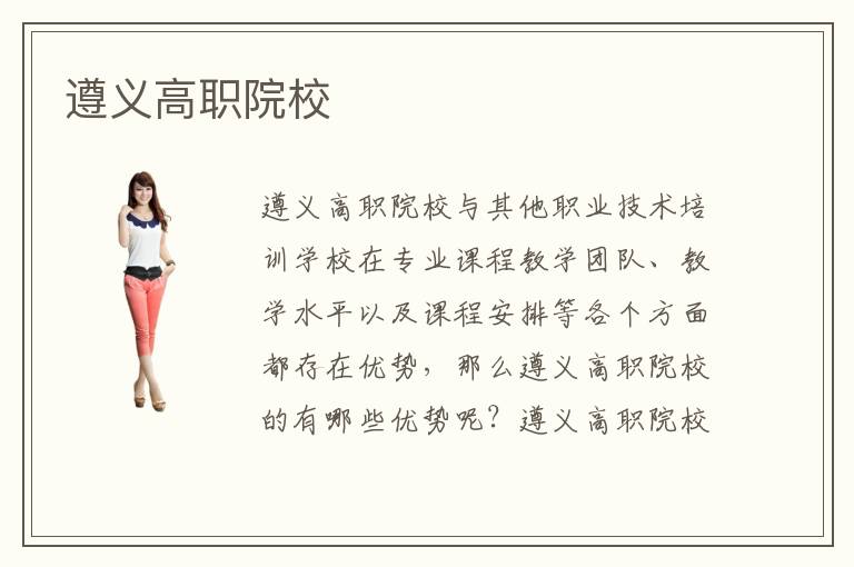 遵義高職院校與其他職業(yè)技術(shù)培訓(xùn)學(xué)校在專業(yè)課程教學(xué)團隊、教學(xué)水平以及課程安排等各個方面都存在優(yōu)勢,那么遵義高職院校的有哪些優(yōu)勢呢?遵義高職院校開設(shè)了豐富多樣的專業(yè)課程,在教學(xué)培訓(xùn)的同時也注重提高學(xué)員們的學(xué)習(xí)效率,一流的教學(xué)團隊自然可以提供給學(xué)員們更高質(zhì)量的專業(yè)教學(xué)水平,而在專業(yè)課程的安排這一方面也會根據(jù)市場對于。技術(shù)人才的需求變化而不斷調(diào)整。
