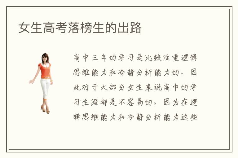 高中三年的學(xué)習(xí)是比較注重邏輯思維能力和冷靜分析能力的,因此對(duì)于大部分女生來(lái)說(shuō)高中的學(xué)習(xí)生涯都是不容易的,因?yàn)樵谶壿嬎季S能力和冷靜分析能力這些方面女生都是較遜色于男生的,這也就是為什么女生高考落榜率總是高于男生的主要原因了。那么,女生高考落榜生的出路是什么呢?相反女生在設(shè)計(jì)方面還是比較優(yōu)秀的,因此女同學(xué)們可以選擇當(dāng)下比較熱門的設(shè)計(jì)類專業(yè)進(jìn)行學(xué)習(xí)。