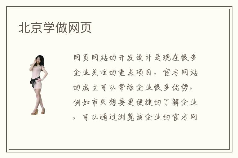 網(wǎng)頁網(wǎng)站的開發(fā)設(shè)計(jì)是現(xiàn)在很多企業(yè)關(guān)注的重點(diǎn)項(xiàng)目,官方網(wǎng)站的成立可以帶給企業(yè)很多優(yōu)勢,例如市民想要更便捷的了解企業(yè),可以通過瀏覽該企業(yè)的官方網(wǎng)站上的相關(guān)咨詢進(jìn)行了解。另一方面,官方網(wǎng)站的成立也在不知不覺中提高了企業(yè)的知名度,是一種比較低成本的宣傳方式。網(wǎng)頁開發(fā)設(shè)計(jì)師在國內(nèi)市場具有很好的發(fā)展前景,那么在北京學(xué)做網(wǎng)頁的難度大不大呢?
