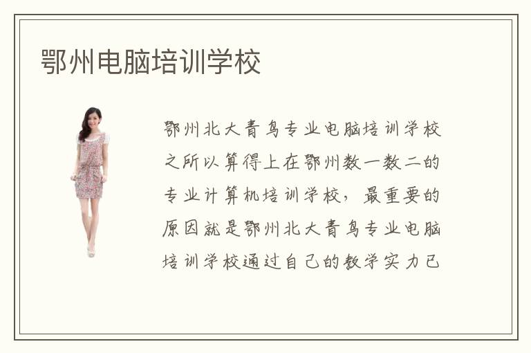 鄂州北大青鳥專業(yè)電腦培訓(xùn)學(xué)校之所以算得上在鄂州數(shù)一數(shù)二的專業(yè)計(jì)算機(jī)培訓(xùn)學(xué)校,最重要的原因就是鄂州北大青鳥專業(yè)電腦培訓(xùn)學(xué)校通過自己的教學(xué)實(shí)力已經(jīng)成功獲得了廣大市民的認(rèn)可,在專業(yè)課程的教學(xué)方面口碑不錯(cuò)、經(jīng)驗(yàn)豐富。鄂州北大青鳥電腦培訓(xùn)學(xué)校作為北大青鳥在鄂州開設(shè)的分校區(qū),這么可靠的另一個(gè)原因也是來自于北大青鳥專業(yè)計(jì)算機(jī)培訓(xùn)學(xué)校的獨(dú)特的專有教學(xué)方式。