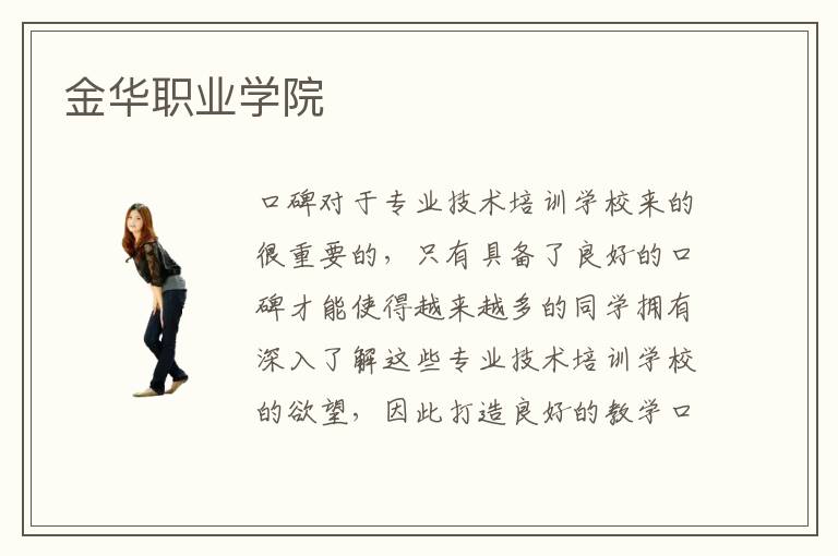 口碑對于專業(yè)技術(shù)培訓(xùn)學(xué)校來的很重要的,只有具備了良好的口碑才能使得越來越多的同學(xué)擁有深入了解這些專業(yè)技術(shù)培訓(xùn)學(xué)校的欲望,因此打造良好的教學(xué)口碑是大多數(shù)專業(yè)技術(shù)培訓(xùn)學(xué)校一直在努力的方向。那么,金華職業(yè)學(xué)院的教學(xué)口碑好不好呢?金華職業(yè)學(xué)院的教學(xué)質(zhì)量夠不夠?qū)I(yè)呢?金華職業(yè)學(xué)院總的來說還是很可靠的,教學(xué)實(shí)力自然也是得到了大多數(shù)同學(xué)的肯定。