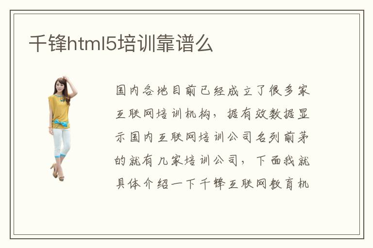 國內(nèi)各地目前已經(jīng)成立了很多家互聯(lián)網(wǎng)培訓(xùn)機構(gòu),據(jù)有效數(shù)據(jù)顯示國內(nèi)互聯(lián)網(wǎng)培訓(xùn)公司名列前茅的就有幾家培訓(xùn)公司,下面我就具體介紹一下千鋒互聯(lián)網(wǎng)教育機構(gòu)吧。很多人都在問千鋒html5培訓(xùn)靠譜么?千鋒的教學(xué)方式怎么樣?進(jìn)度快不快?千鋒作為國內(nèi)html5教育培訓(xùn)機構(gòu)名列前茅的一家專業(yè)培訓(xùn)公司,師資力量強大,不同基礎(chǔ)不同教學(xué)方式,這樣的教學(xué)模式下,成為html5人才并不難。