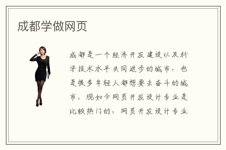 成都是一個(gè)經(jīng)濟(jì)開(kāi)發(fā)建設(shè)以及科學(xué)技術(shù)水平共同進(jìn)步的城市,也是很多年輕人都想要去奮斗的城市?,F(xiàn)如今網(wǎng)頁(yè)開(kāi)發(fā)設(shè)計(jì)專(zhuān)業(yè)是比較熱門(mén)的,網(wǎng)頁(yè)開(kāi)發(fā)設(shè)計(jì)專(zhuān)業(yè)技術(shù)人才也是各大企業(yè)所需要的,并且給予的薪資待遇也是很優(yōu)厚的。那么,成都學(xué)做網(wǎng)頁(yè)要去哪里比較合適呢?現(xiàn)如今成立了很多專(zhuān)業(yè)的成都網(wǎng)頁(yè)開(kāi)發(fā)設(shè)計(jì)培訓(xùn)學(xué)校,想要學(xué)習(xí)網(wǎng)頁(yè)開(kāi)發(fā)設(shè)計(jì)專(zhuān)業(yè)的同學(xué)可以從這些學(xué)校里選擇。