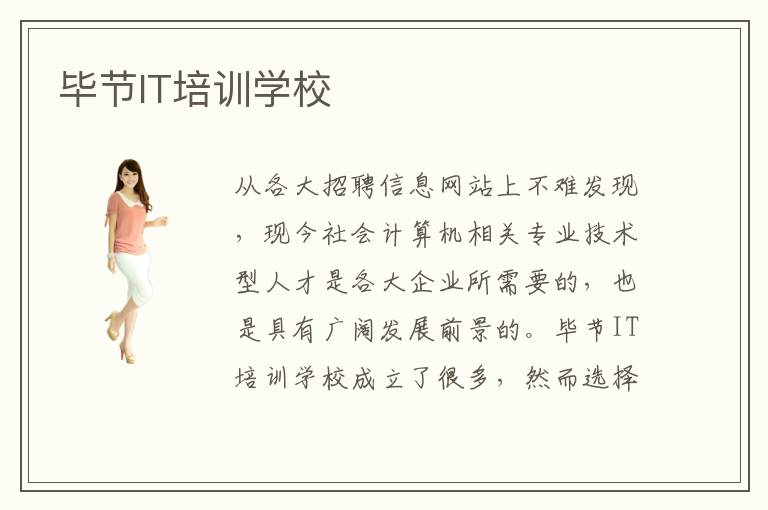 從各大招聘信息網(wǎng)站上不難發(fā)現(xiàn),現(xiàn)今社會(huì)計(jì)算機(jī)相關(guān)專業(yè)技術(shù)型人才是各大企業(yè)所需要的,也是具有廣闊發(fā)展前景的。畢節(jié)IT培訓(xùn)學(xué)校成立了很多,然而選擇一所比較靠譜的專業(yè)計(jì)算機(jī)培訓(xùn)學(xué)校是很重要的,那么,畢節(jié)IT培訓(xùn)學(xué)校哪家好呢?現(xiàn)在很多畢節(jié)IT培訓(xùn)學(xué)校都會(huì)開(kāi)設(shè)相關(guān)專業(yè)的“試學(xué)一周”活動(dòng),想要學(xué)習(xí)計(jì)算機(jī)專業(yè)但是糾結(jié)于畢節(jié)IT培訓(xùn)學(xué)校的同學(xué)可以參加試學(xué)活動(dòng)呢。