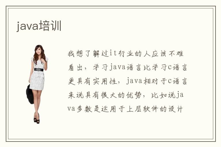 我想了解過it行業(yè)的人應(yīng)該不難看出,學(xué)習(xí)java語言比學(xué)習(xí)c語言更具有實(shí)用性,java相對(duì)于c語言來說具有很大的優(yōu)勢(shì),比如說java多數(shù)是運(yùn)用于上層軟件的設(shè)計(jì)上,這就使java在本身的設(shè)計(jì)上就占了大塊優(yōu)勢(shì),同時(shí)在占用內(nèi)存這一方面也遠(yuǎn)遠(yuǎn)小于c語言,目前大量的安卓開發(fā)與java也息息相關(guān)。想要學(xué)習(xí)java語言,報(bào)名java培訓(xùn)班就是個(gè)不錯(cuò)的選擇。
