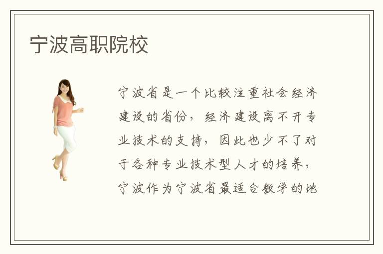 寧波省是一個(gè)比較注重社會(huì)經(jīng)濟(jì)建設(shè)的省份,經(jīng)濟(jì)建設(shè)離不開專業(yè)技術(shù)的支持,因此也少不了對(duì)于各種專業(yè)技術(shù)型人才的培養(yǎng),寧波作為寧波省最適合教學(xué)的地區(qū),成立了很多寧波高職院校。寧波高職院??孔V不靠譜呢?寧波高職院校的專業(yè)化教學(xué)會(huì)使得學(xué)員們在專業(yè)學(xué)習(xí)過程中提高學(xué)習(xí)效率,降低學(xué)習(xí)難度,從而更快更好的完成相關(guān)專業(yè)的學(xué)習(xí),當(dāng)然也是需要進(jìn)行寧波高職院校謹(jǐn)慎選擇的。