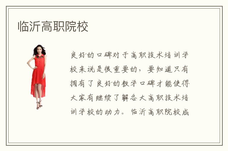 良好的口碑對(duì)于高職技術(shù)培訓(xùn)學(xué)校來(lái)說(shuō)是很重要的,要知道只有擁有了良好的教學(xué)口碑才能使得大家有繼續(xù)了解各大高職技術(shù)培訓(xùn)學(xué)校的動(dòng)力。臨沂高職院校成立至今多年,那么臨沂高職院校的口碑怎么樣呢?臨沂高職院校是廣大市民心目中一個(gè)比較適合進(jìn)行專業(yè)技術(shù)學(xué)習(xí)的平臺(tái),大多數(shù)人對(duì)于臨沂高職院校的評(píng)價(jià)還是比較積極的,臨沂高職院校也正是憑借自己的教學(xué)實(shí)力獲得了良好的口碑。